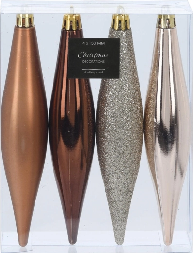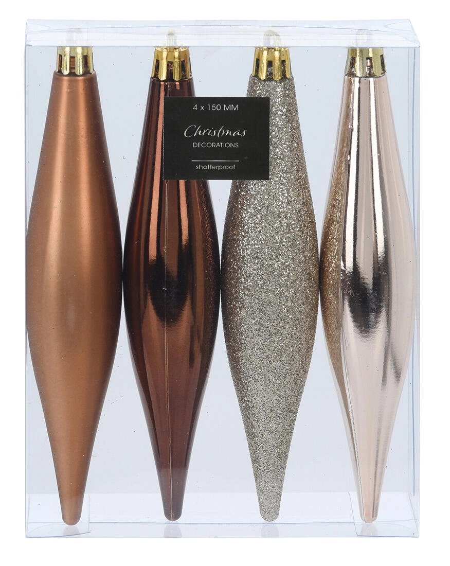Oživte vánoční výzdobu nadčasovými ozdobami ve tvaru rampouchů. Hnědo‑zlatý mix odstínů dodá stromku, větvím i věncům teplý a elegantní nádech a přirozeně se kombinuje s dalšími dekoracemi. Výška 15 cm zajišťuje viditelný efekt bez pocitu přeplněnosti.