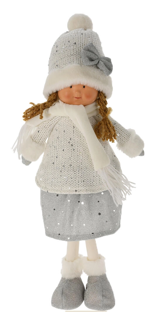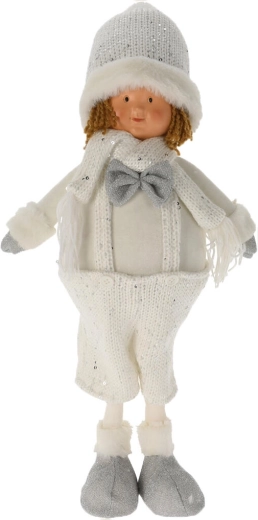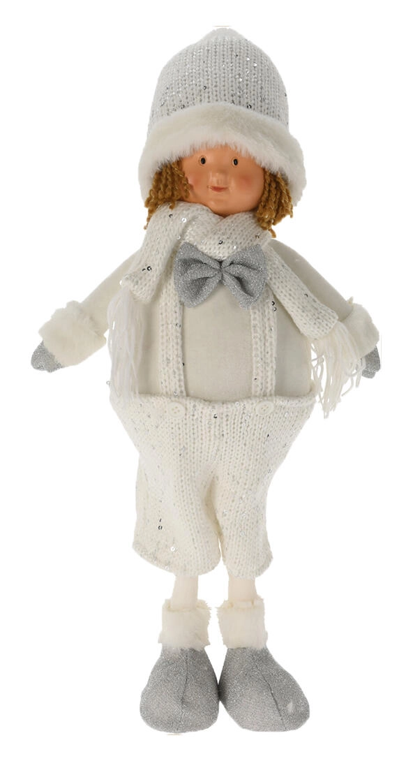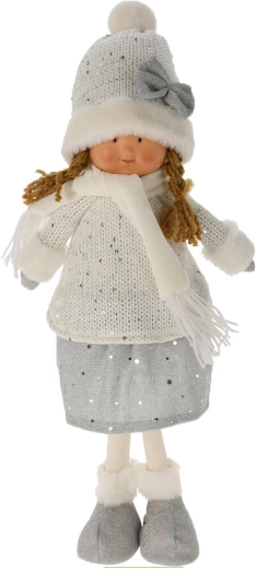 Tato stojící figurka v zimním outfitu potěší děti i dospělé. Krásně ladí s moderními interiéry a díky jemným detailům – pletené čepici s bambulí, šále a hebkým botičkám – působí útulně a slavnostně. Lehká, ale stabilní dekorace, kterou snadno umístíte na jakoukoli rovnou plochu.