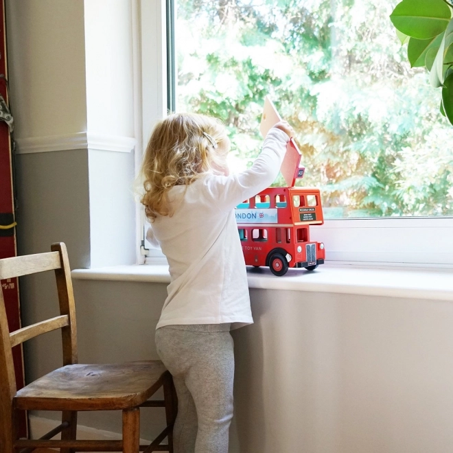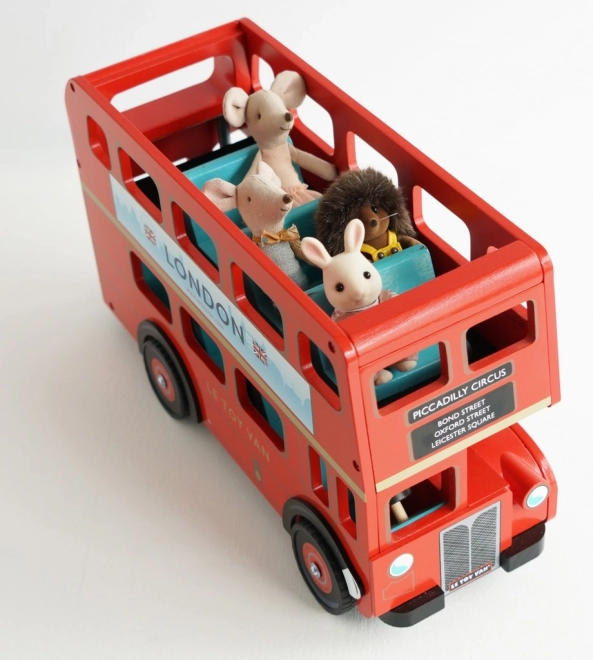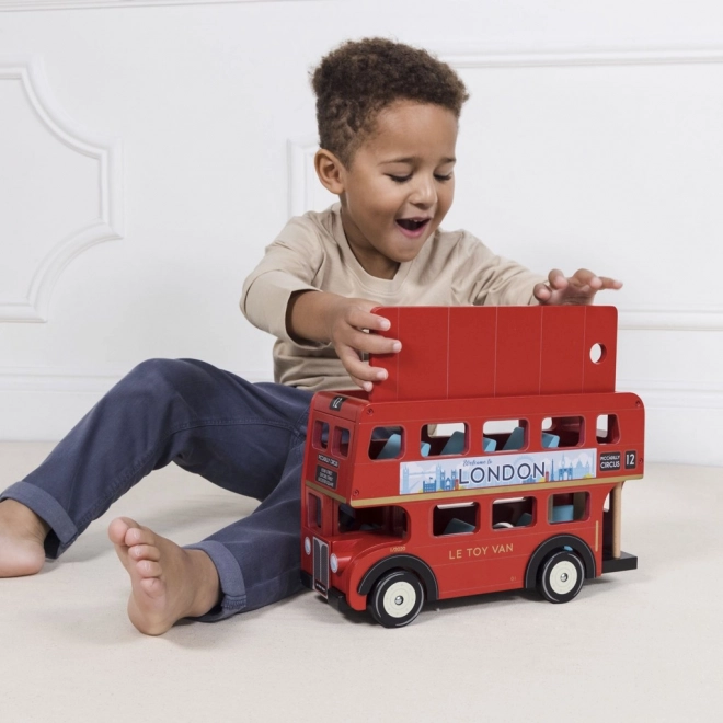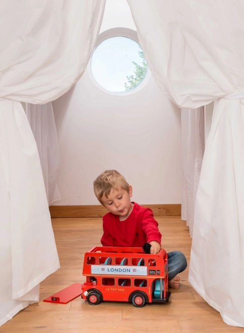 Objevte krásy Londýna s dřevěným dvoupatrovým autobusem Le Toy Van. Tato ikonická hračka, navržena s detaily jako realistické značení a odnímatelnou střechou, nabízí skvělý způsob, jak rozvíjet dětskou představivost a jemnou motoriku.