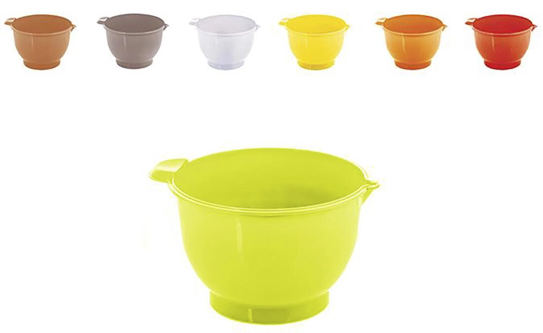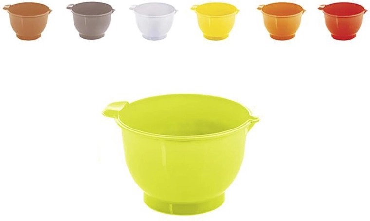 Integrovaná výlevka usnadňuje přesné a čisté přelévání těsta nebo krémů do formy. Odolný plast se snadno udržuje a mísa je lehká a pohodlně se s ní manipuluje. Dodává se v mixu barev, takže snadno zapadne do každé kuchyně.