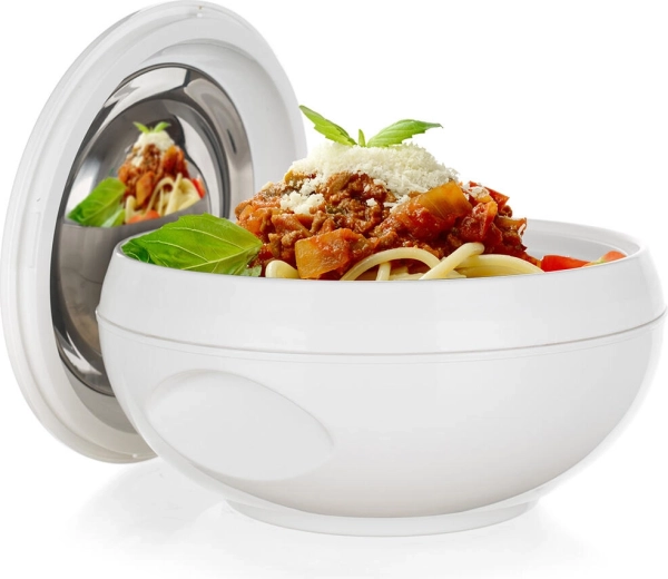 Díky objemu 5 l snadno připravíte porce pro více osob. Lehký plastový plášť v bílé barvě se dobře drží a snadno se udržuje. Víko s praktickým úchytem pomáhá omezit únik tepla a chrání pokrmy při přenášení.