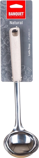 Naběračka NATURAL je navržena pro každodenní spolehlivý provoz v gastronomii i doma. Hluboká nerezová hlavice umožňuje pohodlné nabírání polévek a omáček, zatímco lehké a příjemné držadlo z polypropylenu s příměsí pšeničných otrub zajišťuje jistý úchop.