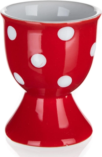 Stylový kalíšek na vajíčko o výšce 7 cm v červené barvě s bílými puntíky dodá vašemu stolování hravý nádech. Je vyroben z kvalitní keramiky, která je odolná, snadno se čistí a udrží vajíčko stabilně na místě.