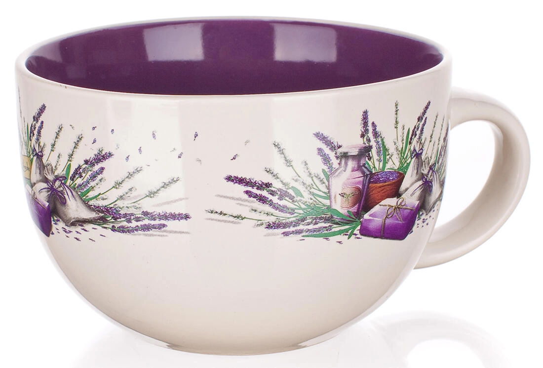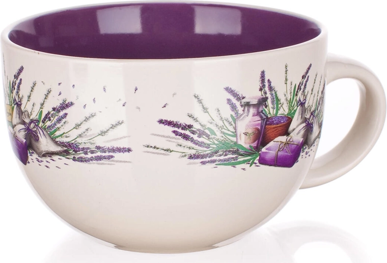 Stylový jumbo hrnek s motivem levandule a objemem 660 ml potěší každodenním používáním. Nabízí dvoubarevnou glazuru, pohodlné pití díky širokému průměru 13 cm a je vhodný do mikrovlnky i myčky pro snadnou údržbu.