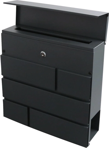 Moderní poštovní schránka BRICKS v elegantní antracitové barvě je ideální pro dopisy, noviny a letáky. Nabízí horní vhoz, cylindrický zámek se 2 klíči a ve spodní části praktický tubus na tiskoviny. Součástí balení jsou šrouby a hmoždinky pro snadnou montáž na zeď či plot.