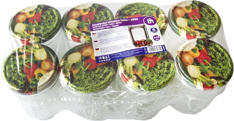 Praktická sada zavařovacích sklenic o objemu 440 ml s uzávěry TWIST 82 v mixu dekorů je ideální pro konzervaci ovoce, zeleniny, marmelád i omáček. Součástí balení je 8 ks sklenic se šroubovacími víčky, která zajišťují spolehlivé uzavření a dlouhou trvanlivost domácích dobrot.