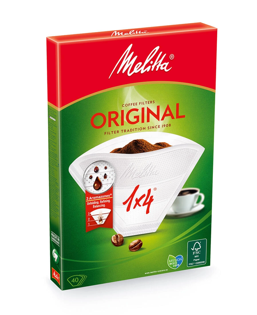 Kvalitní papírové filtry MELITTA Original ve velikosti 4 pro čistou, aromatickou kávu. Díky papíru Aromapor propouštějí jen aroma a chuť, zatímco nežádoucí kaly zůstávají ve filtru. Pevné, spolehlivé a kompatibilní s překapávači všech značek.