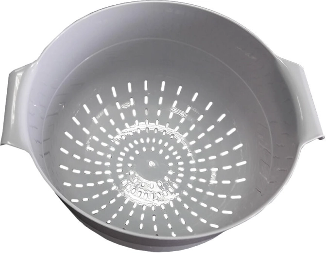 Tento univerzální cedník/mísa z kvalitního plastu usnadní cezení těstovin, rýže či zeleniny a rychlé oplachování ovoce. Široký tvar a praktická ucha zaručují pohodlné držení i při vyšší zátěži, zatímco promyšlené perforace umožňují efektivní odtok vody.