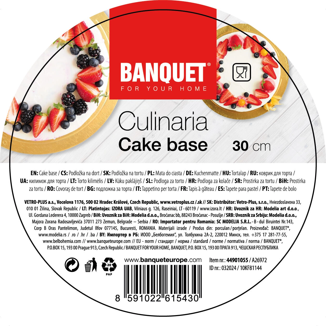 Elegantní kulatá podložka na dort o průměru 30 cm z několika vrstev pevného kartonu s tloušťkou 3 mm. Z obou stran je potažena zlatou fólií pro voděodolnost a nepromastitelnost. Ideální pro dekorování, servírování i přenášení dortů s jistotou stability a reprezentativního vzhledu.