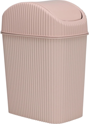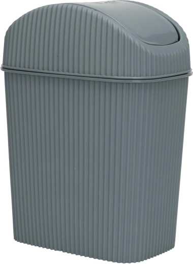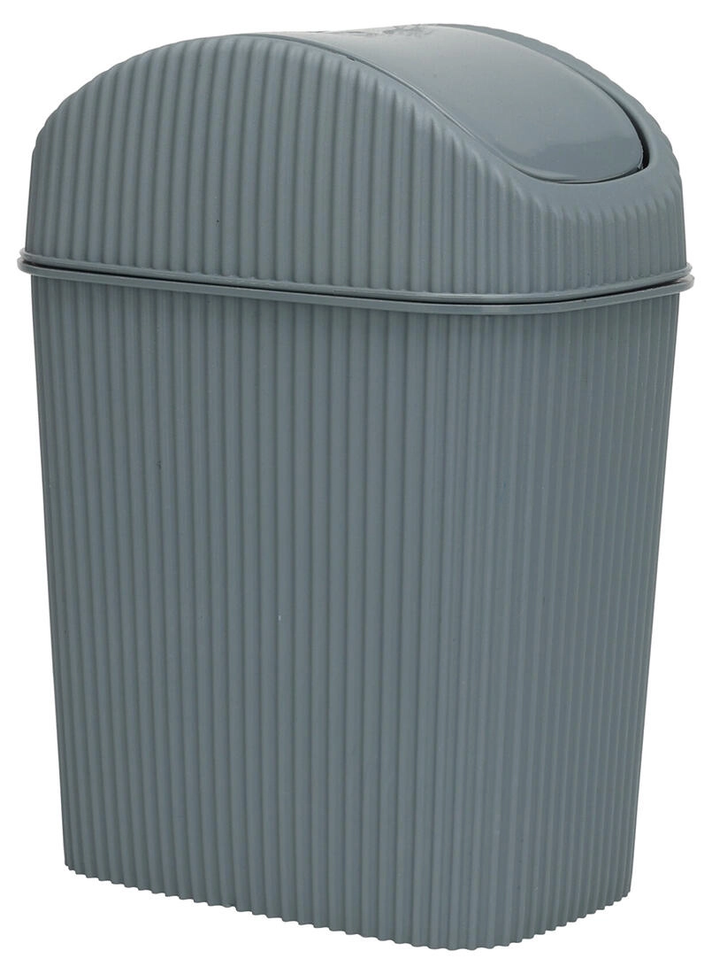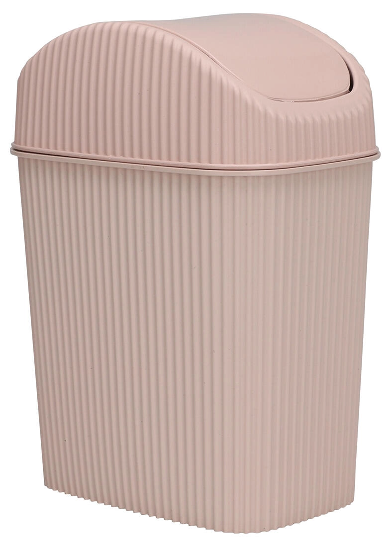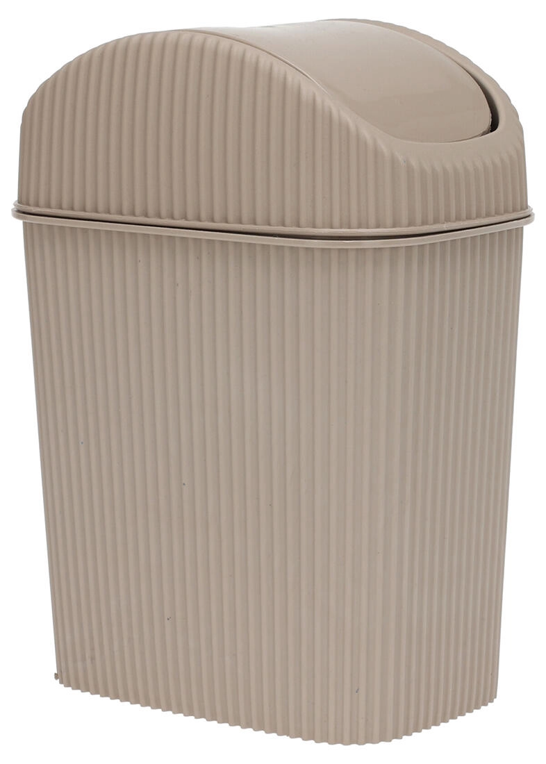 Kompaktní plastový odpadkový koš o objemu 2,5 l je ideální do koupelny, kanceláře i na stůl. Má výklopné víko pro pohodlné vyhazování odpadu, snadno omyvatelné odnímatelné víko a moderní žebrovaný design v mixu barev.