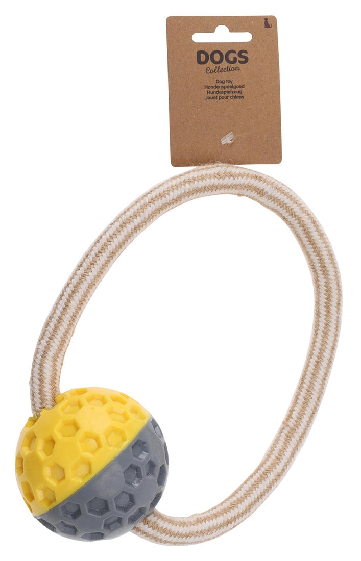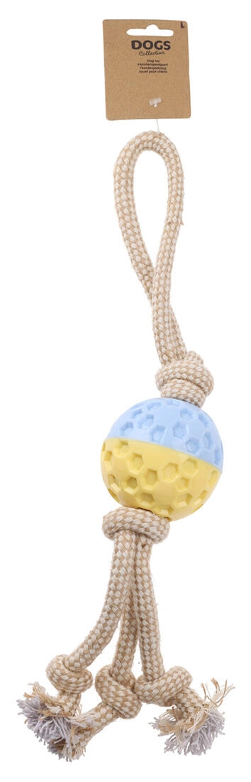 Univerzální psí hračka pro každodenní zábavu – robustní provaz s texturovaným míčkem z TPR. Ideální na házení, aportování i přetahování. Odolná kombinace TPR a bavlny je šetrná k zubům, podporuje dentální hygienu a poskytuje jistý úchop pro psa i majitele.