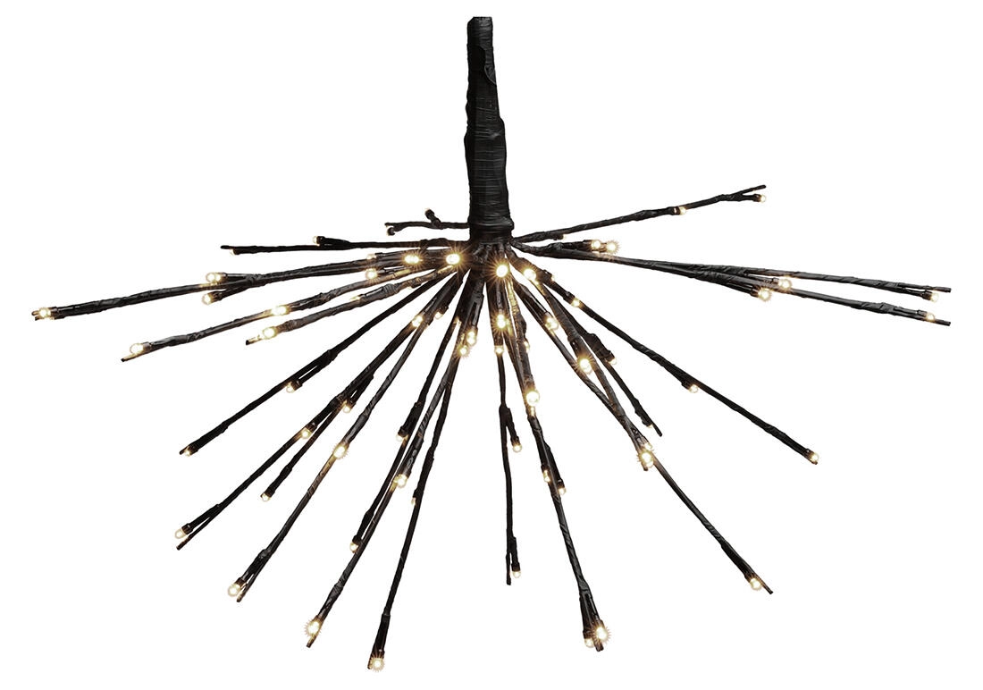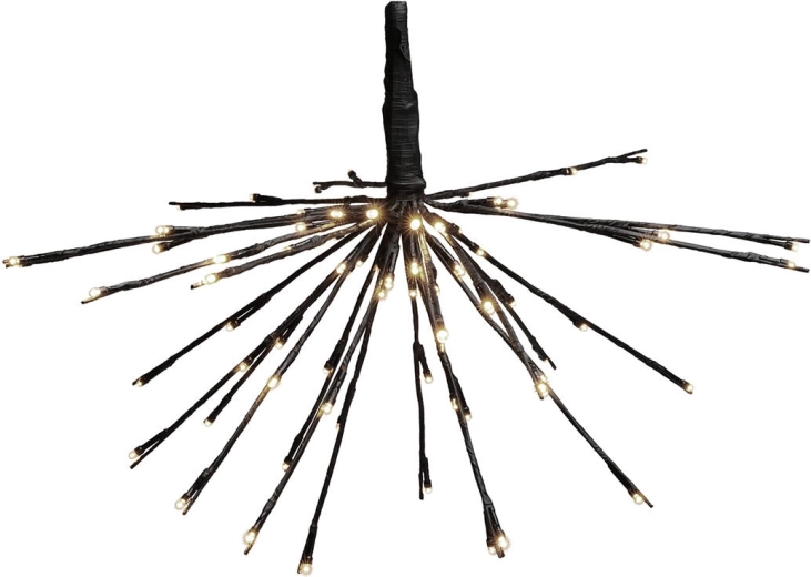 Stylová závěsná dekorace s průměrem 45 cm rozzáří váš interiér pomocí 72 úsporných LED v teplé bílé barvě. Elegantní černé provedení a 24 ramen vytváří moderní vzhled, ideální pro každodenní i sváteční atmosféru.