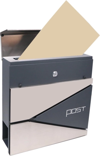Tato prostorná poštovní schránka spolehlivě ochrání vaše dopisy, noviny, časopisy i letáky. Kombinace pozinkované oceli a nerezové oceli zajišťuje dlouhou životnost a odolnost vůči povětrnostním vlivům. Horní vhoz usnadňuje vhazování zásilek a díky tubusu ve spodní části máte noviny vždy po ruce, aniž by zabíraly místo uvnitř schránky.