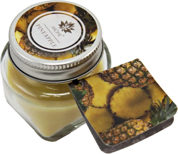 Kompaktní vonná svíčka ve skleněné dóze s víčkem provoní domov a navodí příjemnou atmosféru až na 10 hodin. Na výběr je mix 6 ovocných vůní – pomeranč, ananas, granátové jablko, kiwi, borůvka a kokos. Elegantní sklenička s víčkem a cedulkou pro osobní vzkaz dělá ze svíčky skvělý tip na dárek.