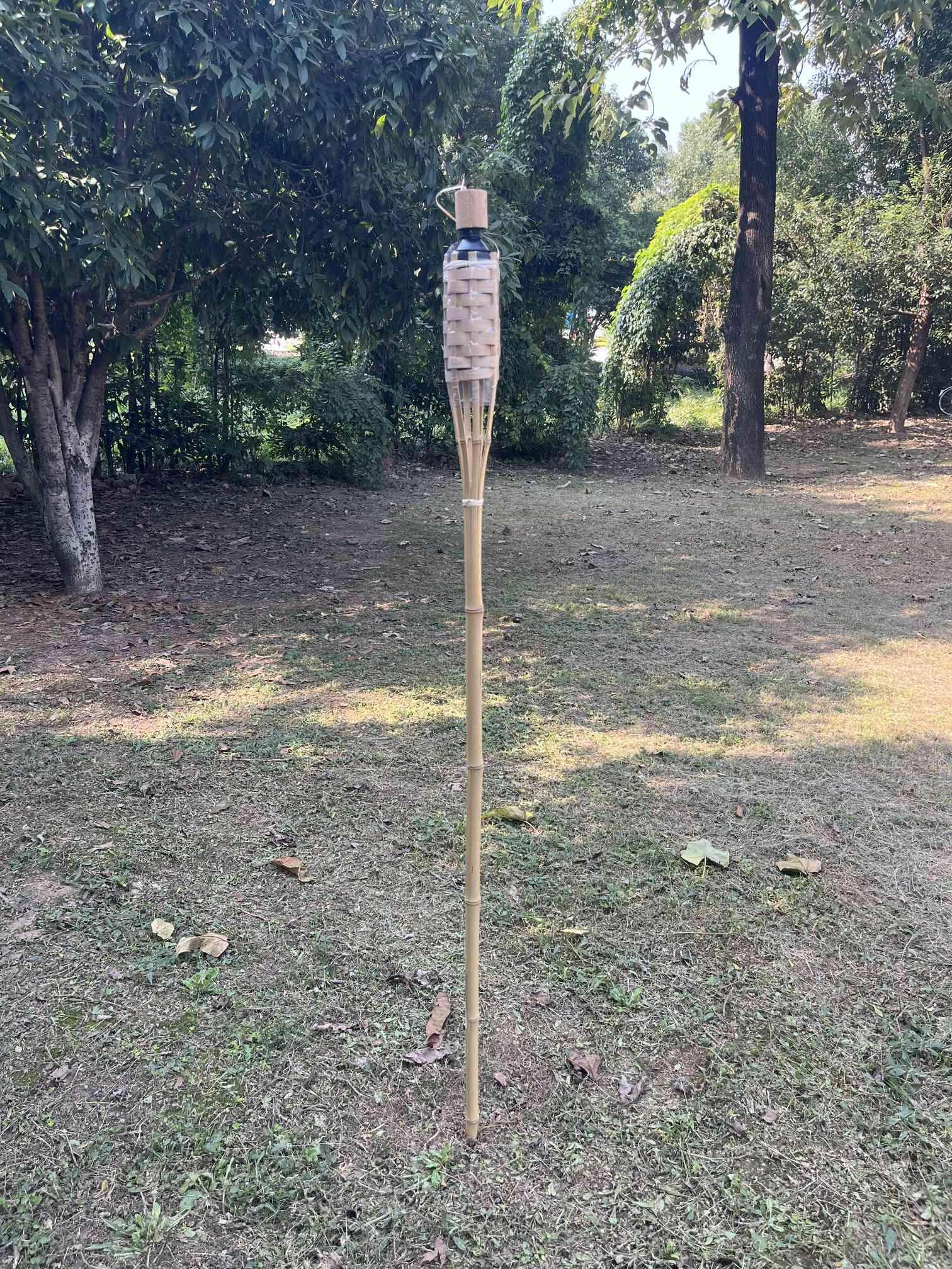 Vytvořte si na zahradě či terase jedinečnou atmosféru s touto bambusovou zahradní loučí o výšce 150 cm. Díky přírodnímu bambusu, kovové nádobce a bavlněnému knotu poskytuje stabilní plamen a stylový vzhled. Louč má bezpečnostní uzávěr a objem 420 ml pro delší hoření. Lze ji plnit lampovým olejem, včetně olejů proti komárům a hmyzu.