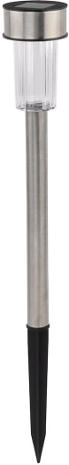 Stylová solární lampa z nerezové oceli přináší úsporné a ekologické osvětlení pro zahradu, terasu i příjezdové cesty. Díky 1 bílé LED poskytuje příjemné orientační světlo, je vybavena spínačem ON/OFF a odolným krytím IP44. Snadná instalace díky plastovému zápichu bez potřeby kabeláže.