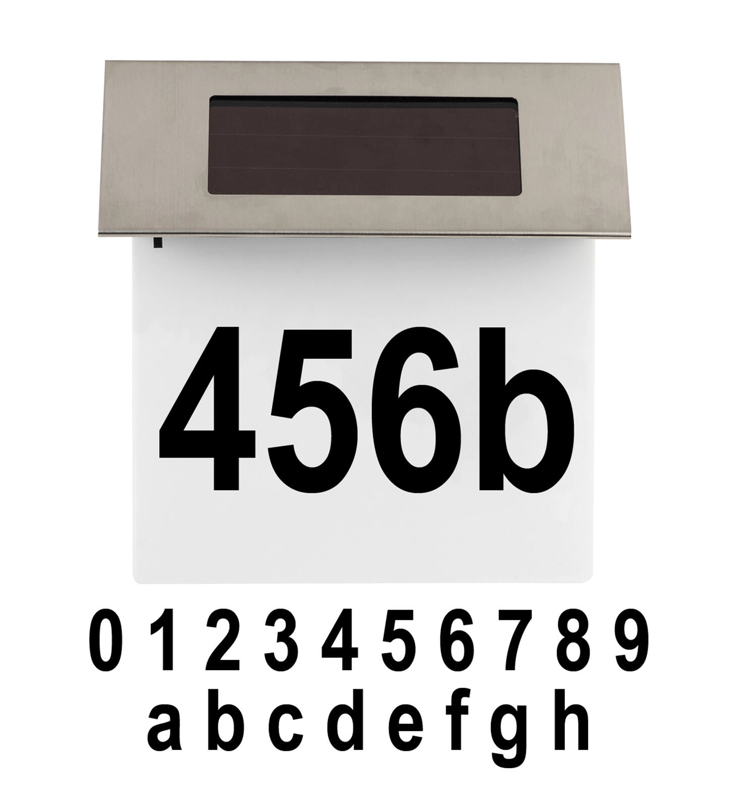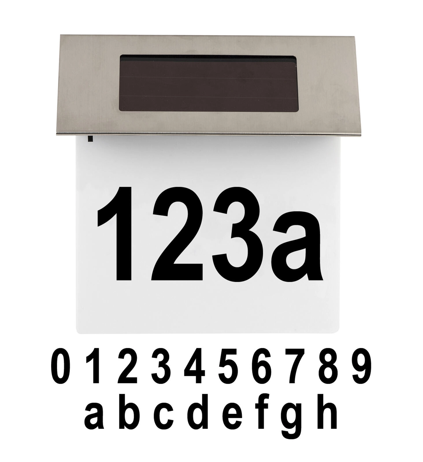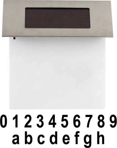 Udělejte svou adresu viditelnou ve dne i v noci. Solární LED svítidlo na číslo domu s nerezovým krytem a bílou podsvětlenou tabulkou nabízí spolehlivé osvětlení díky integrovanému solárnímu panelu a dobíjecí baterii. Bez kabelů, s přepínačem ON/OFF a krytím IP44 pro celoroční použití.