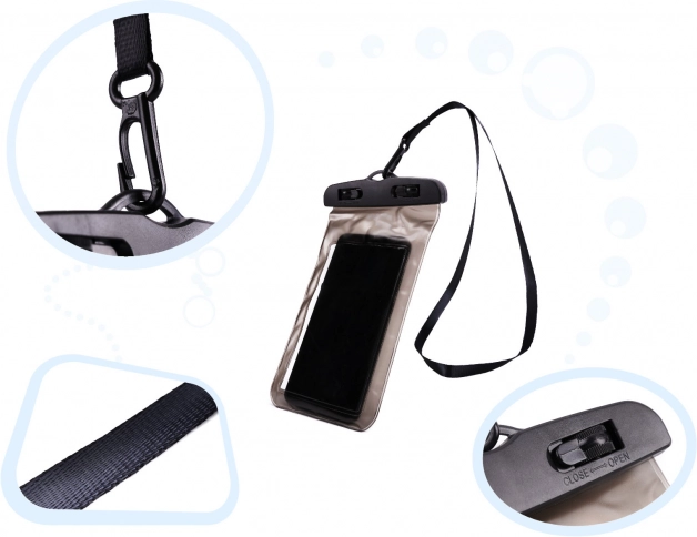 Lehká konstrukce se šňůrkou na krk zajišťuje, že máte telefon, karty i hotovost stále po ruce. Ideální pro plavání, paddleboard, loď, pláž, kolo i běh v dešti.