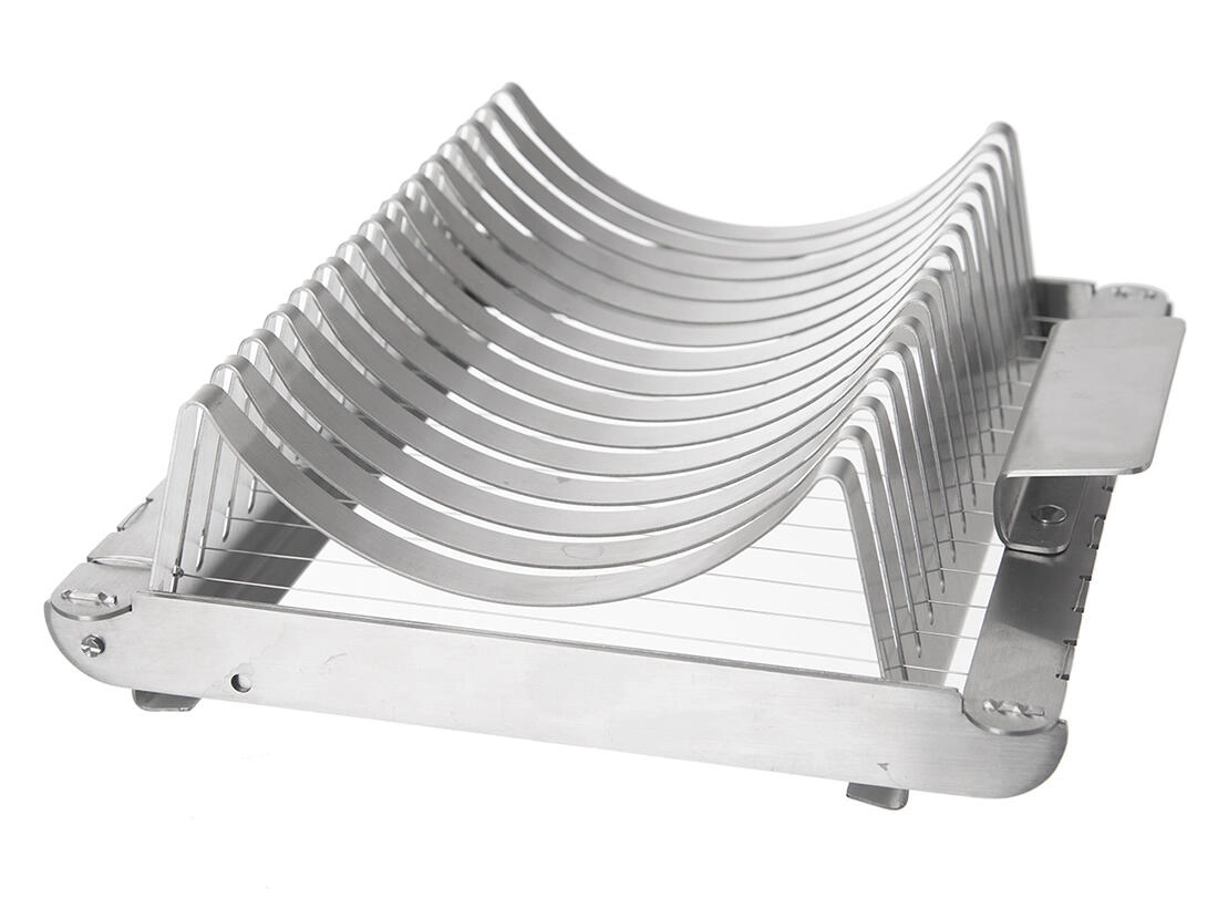 Praktický nerezový kráječ vám umožní najednou nakrájet až 15 rovnoměrných plátků kynutých i bramborových knedlíků o tloušťce cca 1,4 cm. Díky pevným nerezovým strunám řeže rychle a čistě, snadno se udržuje a je vhodný do myčky.