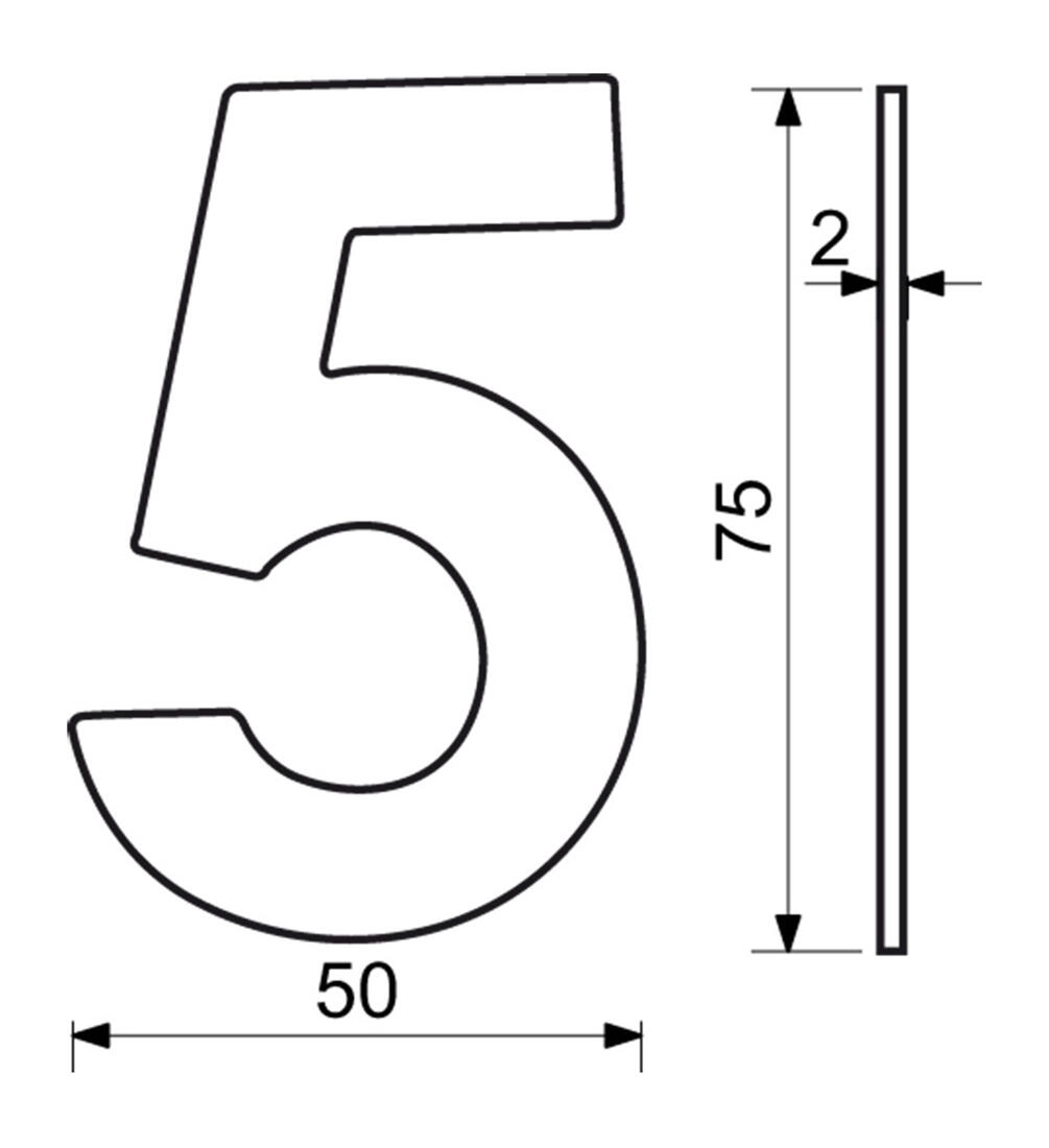 Stylové nerezové domovní číslo 5 v plochém „2D“ provedení dodá vaší fasádě moderní vzhled. Matně černý povrch působí elegantně a díky kvalitnímu materiálu je číslo odolné vůči povětrnostním vlivům.