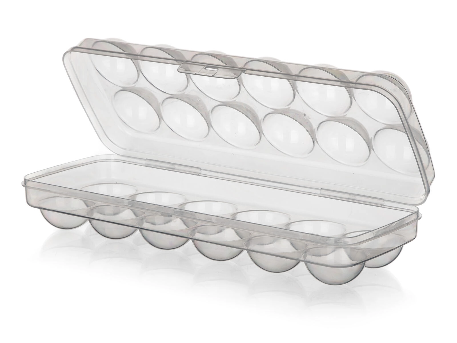 Pevné víko s uzavíracím mechanismem brání samovolnému otevření a udržuje vejce v čistotě a bezpečí.