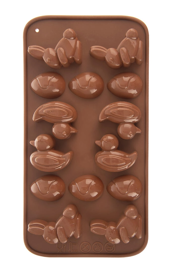Vytvořte snadno velikonoční dobroty díky praktické silikonové formě na zajíčky, kačenky a vajíčka. Forma je nepřilnavá, odolá teplotám -40 °C až +220 °C, nepřejímá chutě ani vůně a je vhodná do myčky. Perfektní pro čokoládu, bonbony, led i pečení.