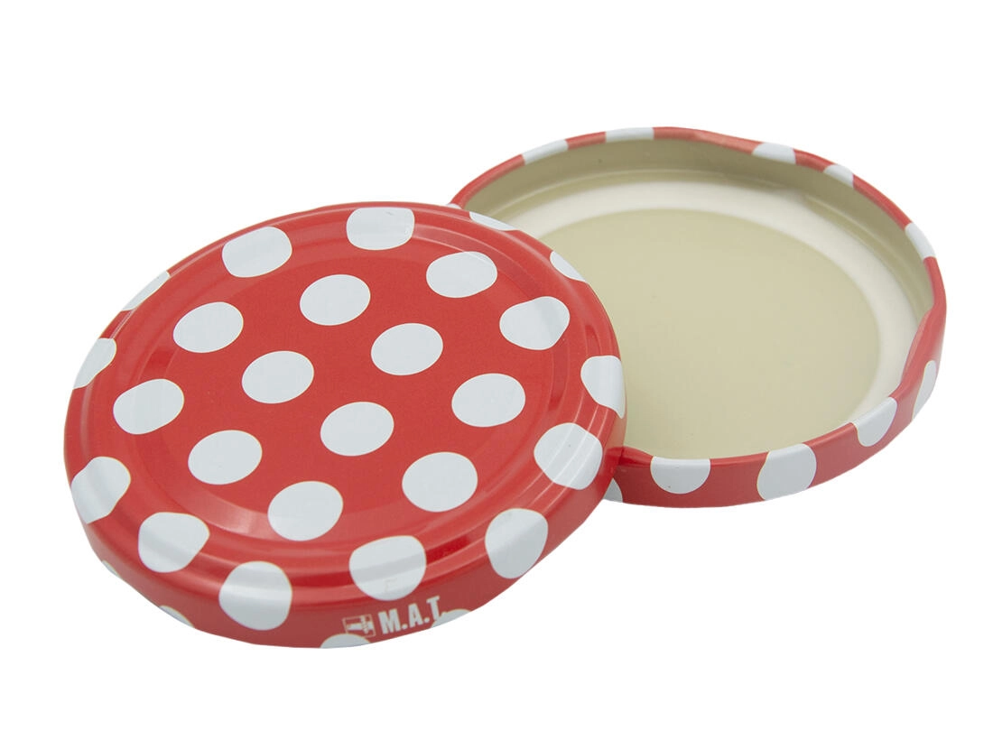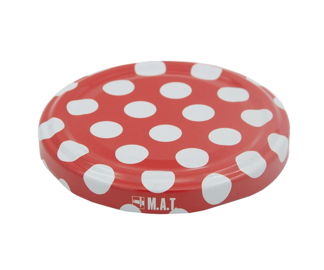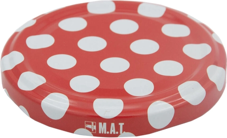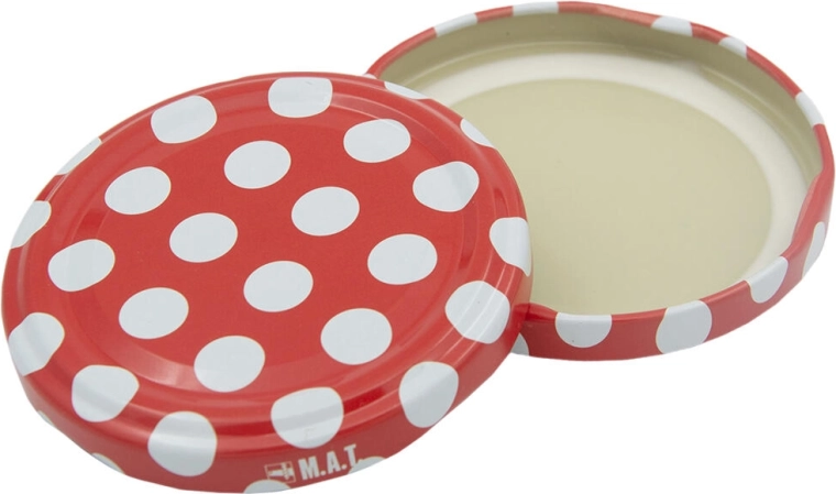Červené víčko s bílými puntíky dodá vašim domácím výrobkům atraktivní vzhled – ideální i jako dárek.