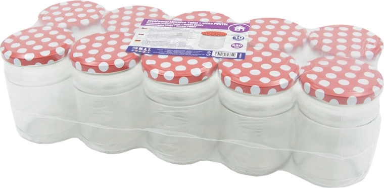 Praktická sada zavařovacích sklenic o objemu 250 ml s uzávěry TWIST 66 a hravým dekorem Puntík. Ideální pro domácí konzervaci menších porcí. Sada obsahuje 10 ks sklenic s víčky TWIST 66, které zajistí spolehlivé utěsnění a dlouhou trvanlivost vašich dobrot.