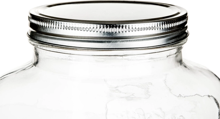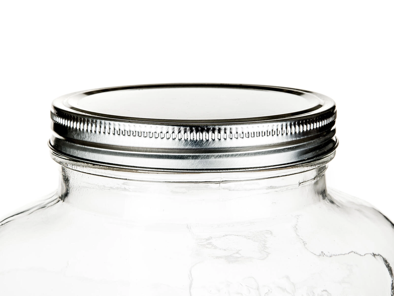 Bytelné sklo zajišťuje stabilitu a přehled o obsahu, kovové víčko chrání nápoje před nečistotami.