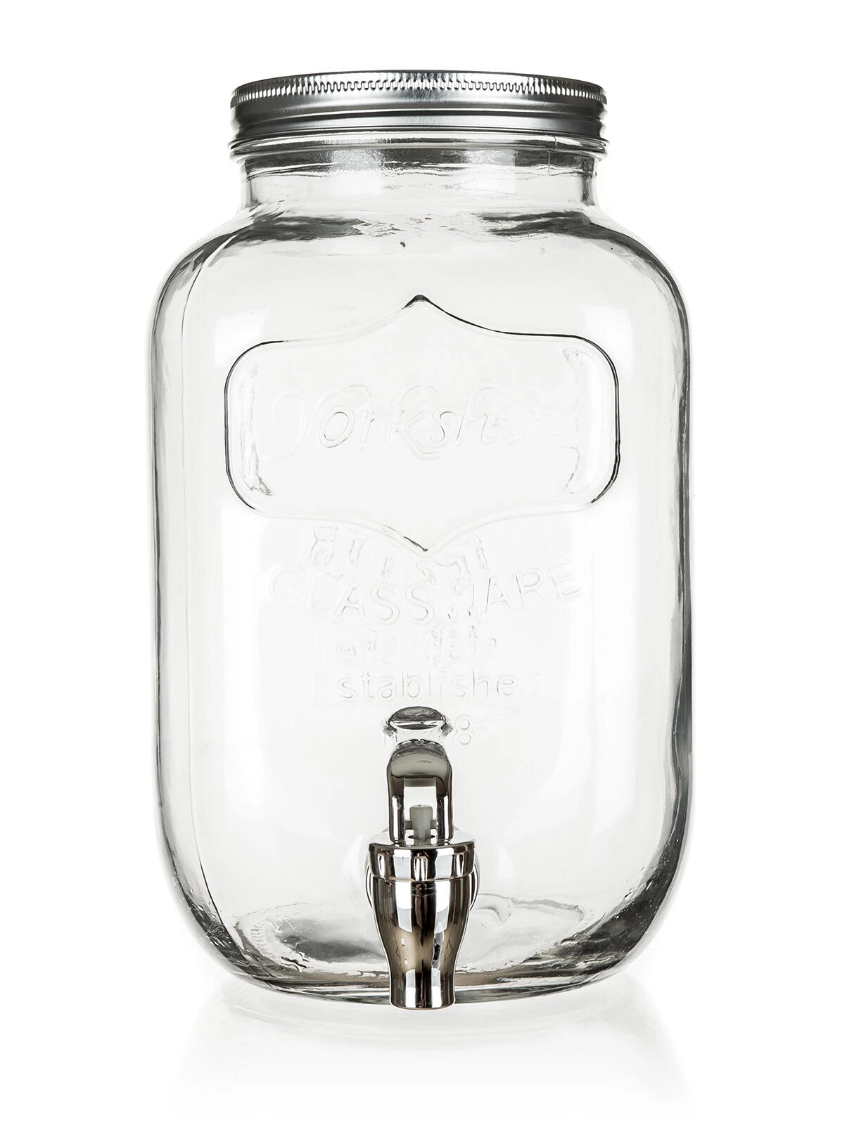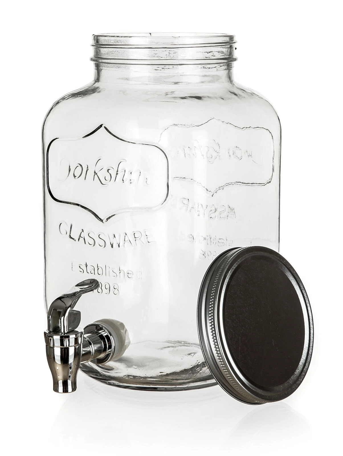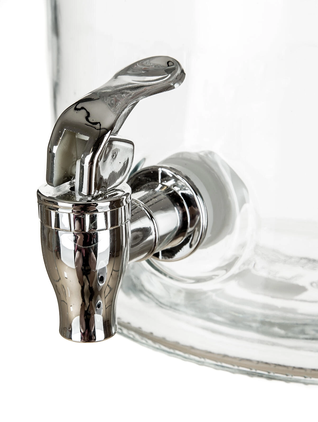 Stylový skleněný zásobník na nápoje BRISA o objemu 4 l je ideální pro servírování domácí limonády, džusů či ledového čaje na oslavách a zahradních párty. Díky širokému hrdlu snadno přidáte led i ovoce, praktický kohoutek zajistí pohodlné dávkování a kovové víčko ochrání nápoj před nečistotami.