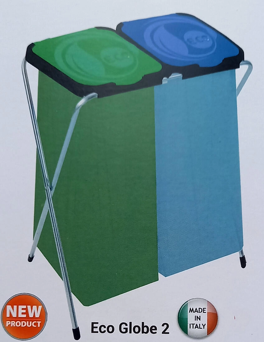 Stojan na tříděný odpad ECO-GLOBE 2 je ideální řešení pro systematické třídění odpadu. Dvojité uspořádání umožňuje oddělit například plast a papír, případně směsný odpad od recyklovatelných surovin. Díky promyšleným rozměrům 66 × 42 × 81 cm se stojan vejde do kuchyní, technických místností i kancelářských koutů.