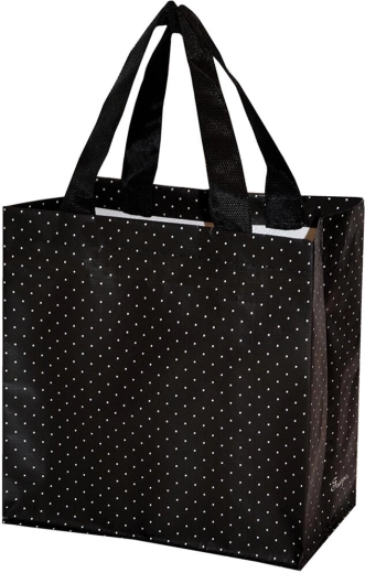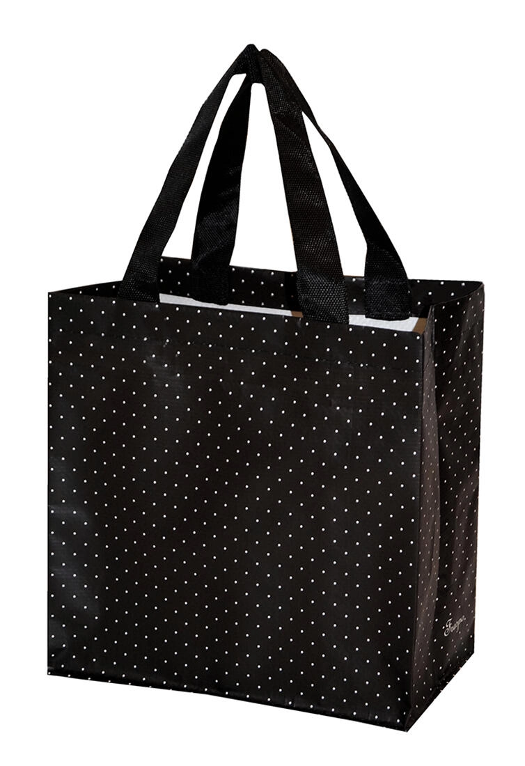 Tato stylová taška v černo‑bílém puntíkovém designu je ideální pro každodenní nákupy i rychlé pochůzky. Díky pevnému materiálu z tkaného laminovaného polypropylenu zvládne nosnost až 10 kg, přitom si zachovává nízkou hmotnost a dlouhou životnost. Kompaktní rozměry 27 × 27 × 15 cm a objem 10 l zaručují, že se pohodlně vejde do skříňky, auta či kabelky.
