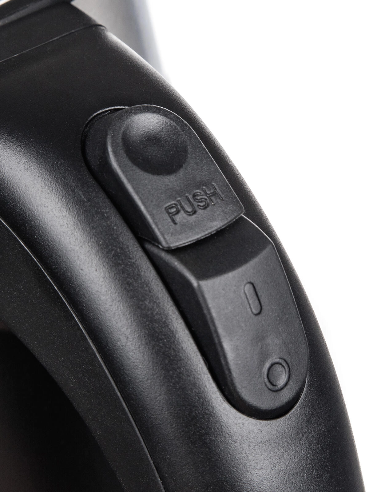 Bezdrátová základna se středovým konektorem umožňuje pohodlné odkládání z jakéhokoli směru. Pohodlné ovládání zajistí ergonomická rukojeť a spínač.