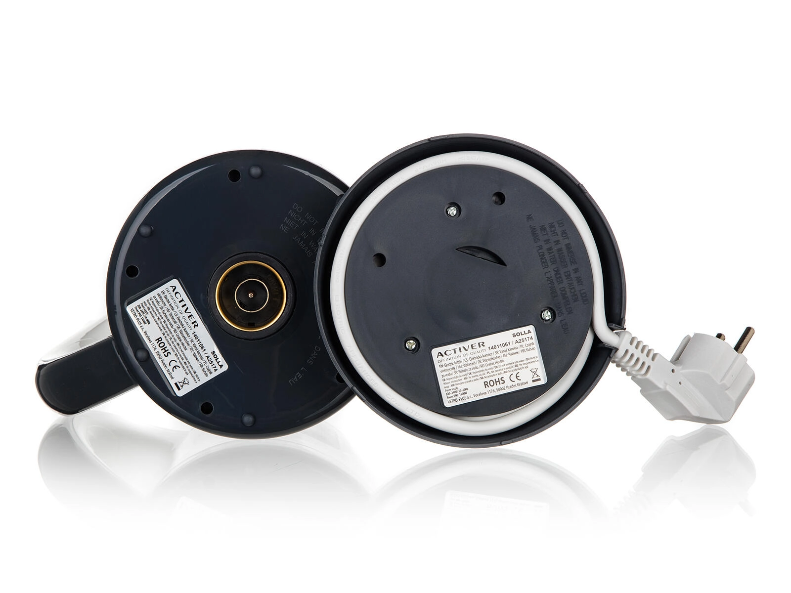 Otočná základna se středovým konektorem umožní pohodlné postavení konvice z jakéhokoli úhlu. Bezpečnost zajišťuje ochrana proti přehřátí a automatické vypnutí po dosažení varu, doplněné manuálním vypínačem a světelnou signalizací provozu.