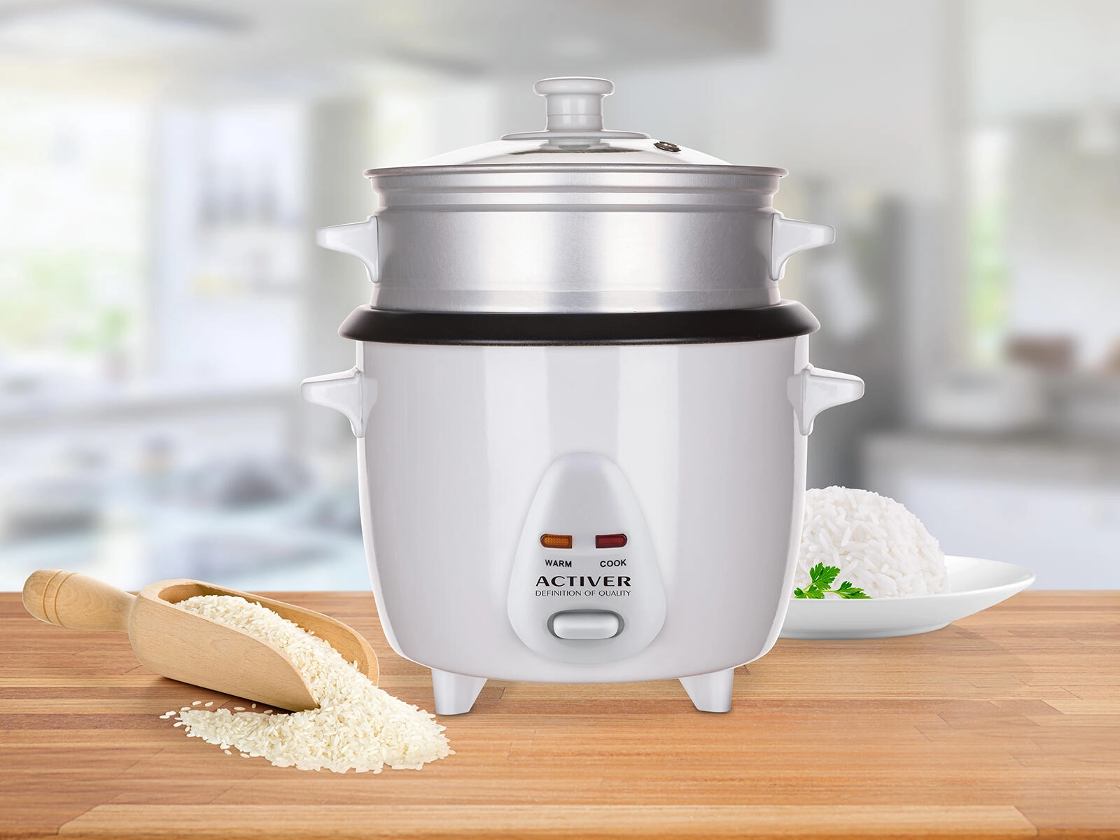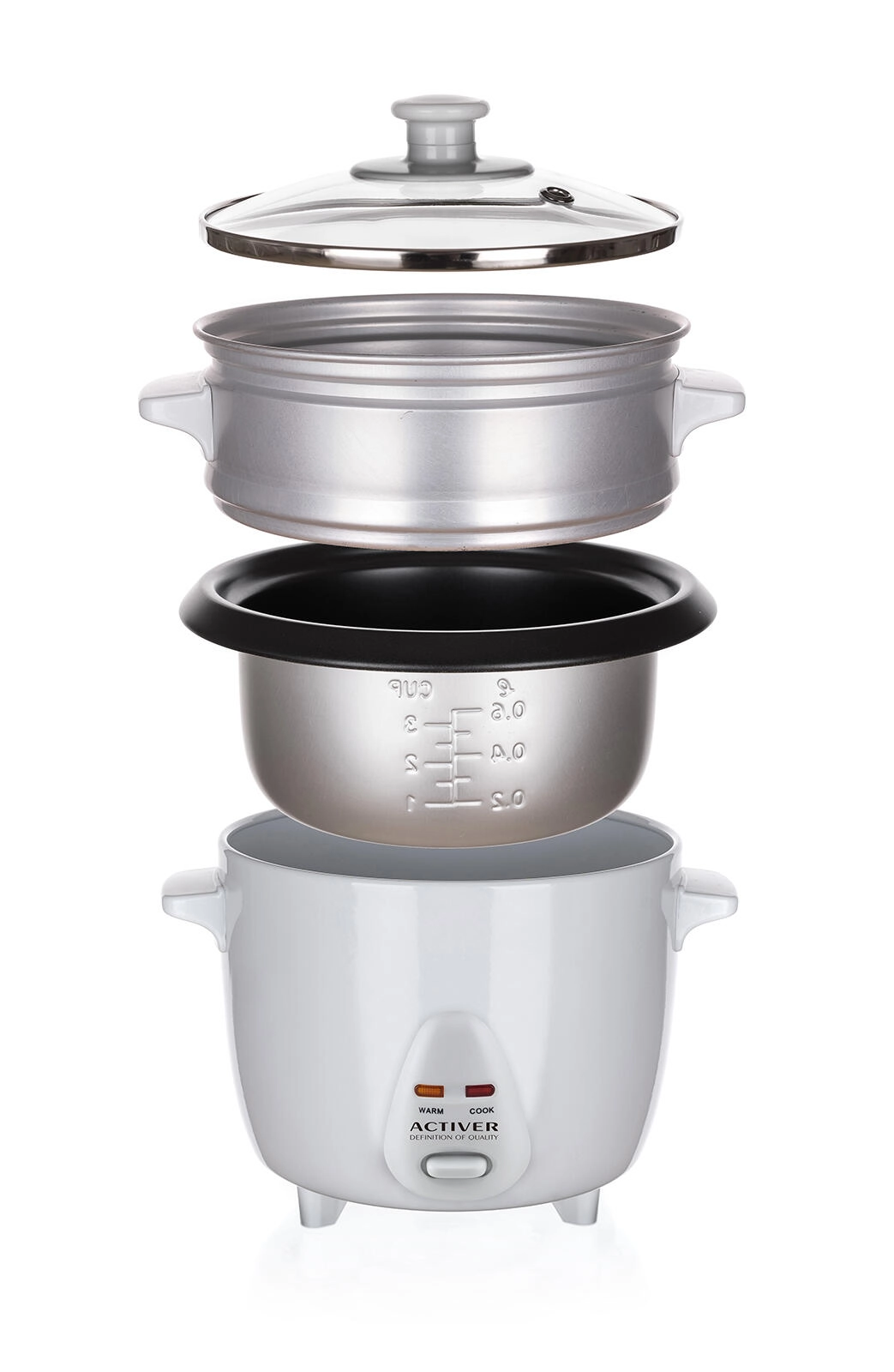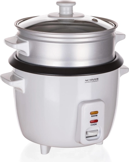 Součástí balení je parní nástavec pro zdravou přípravu zeleniny či ryb, odměrka pro přesné dávkování a naběračka pro snadné servírování. Nepřilnavý vnitřní hrnec zaručuje, že se rýže nepřipaluje a čištění je otázkou chvilky. Skleněná poklice s parním ventilem umožní kontrolu vaření, zatímco světelné kontrolky a protiskluzové nožky zvyšují bezpečnost a komfort.