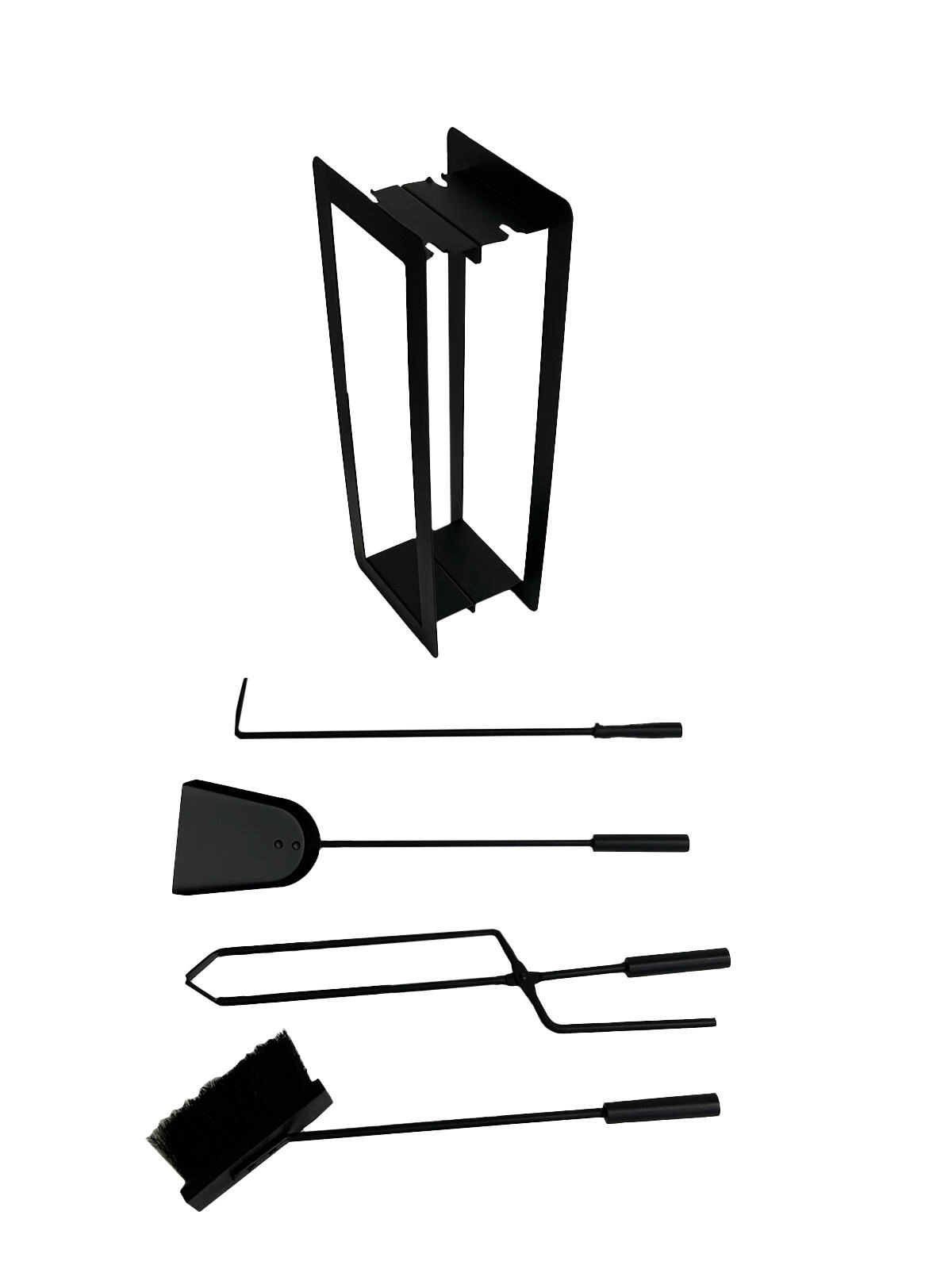 Praktická sada krbového nářadí o výšce 60 cm v elegantním černém provedení obsahuje 4 nástroje a stabilní stojan. Díky dlouhým rukojetím je manipulace u krbu či kamen bezpečná a údržba ohniště rychlá a pohodlná – od přikládání a rozhrnování žhavých uhlíků až po účinné čištění popela.