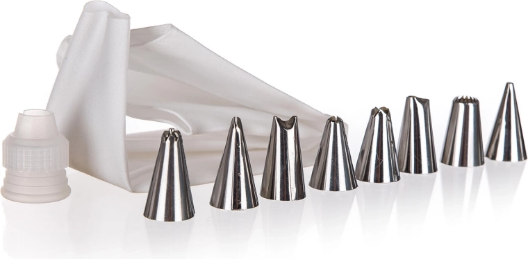 - 1× zdobicí sáček, 1× konektor, 8× nerezová tryska