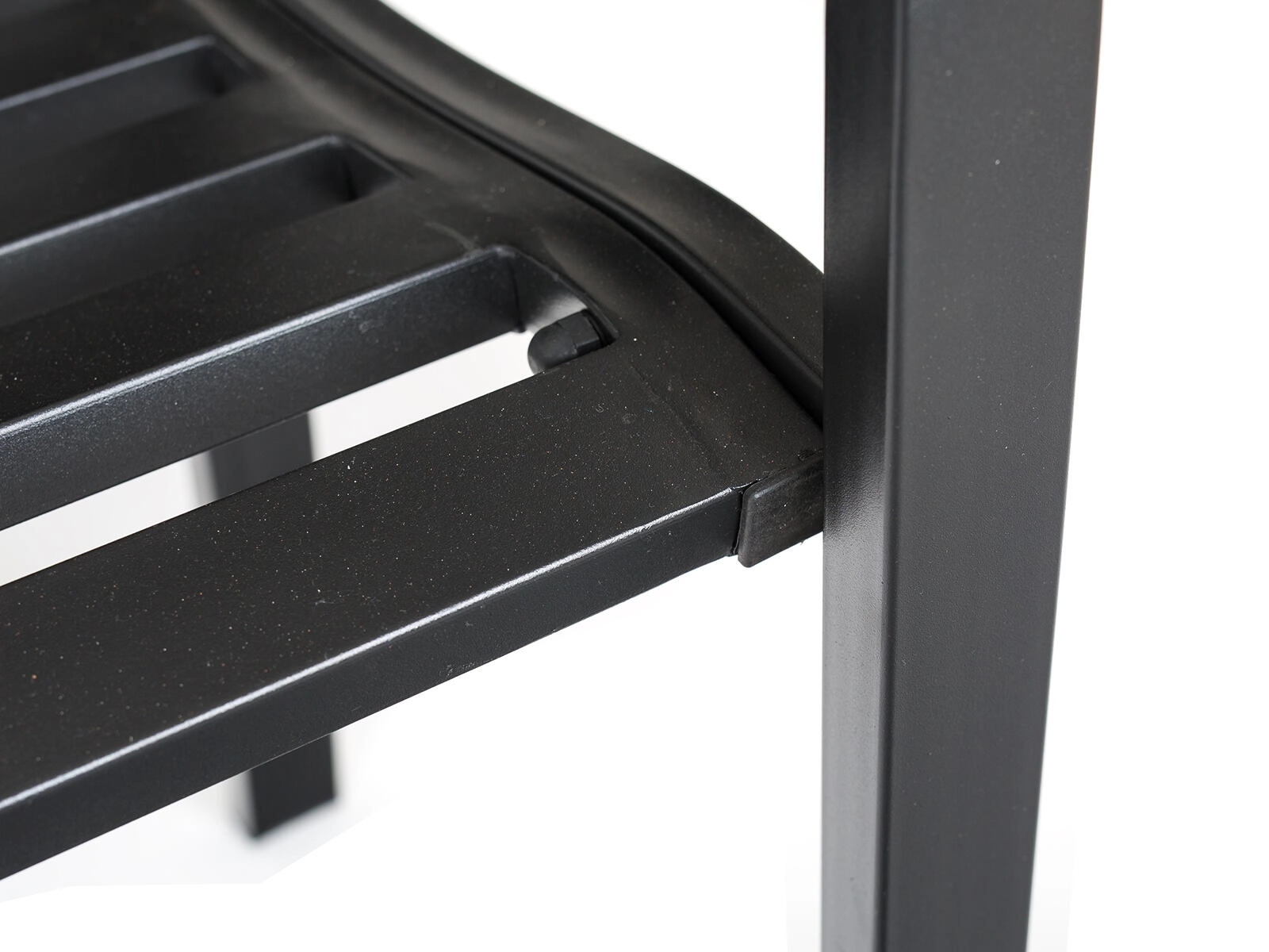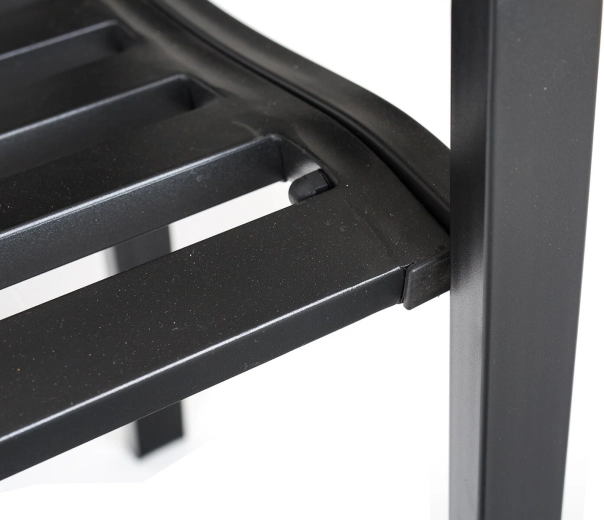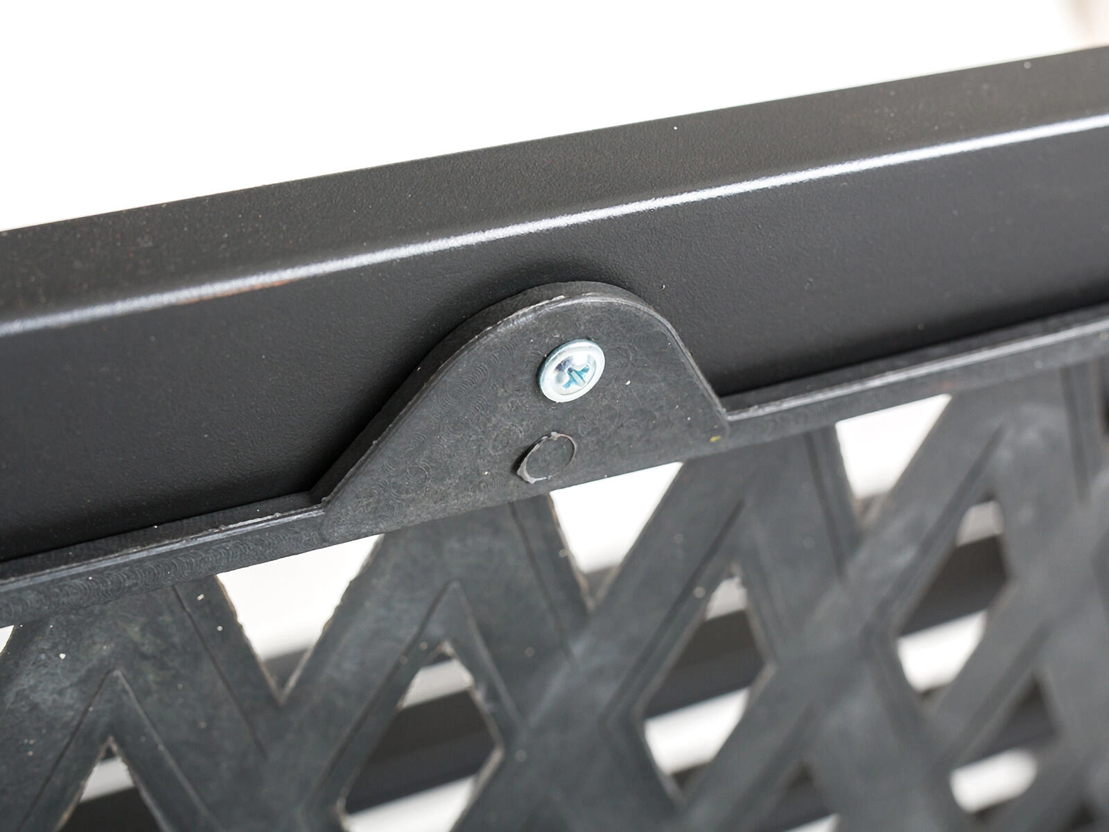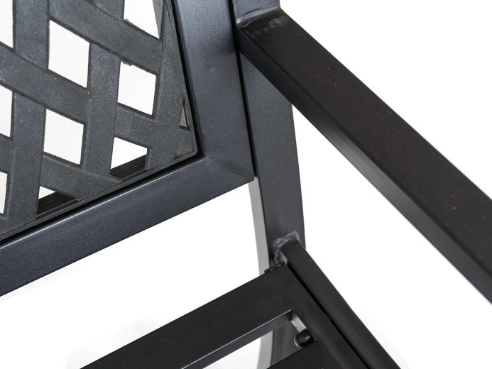 Dekorativní mřížka v opěradle zlepšuje cirkulaci vzduchu a dodává lavičce elegantní vzhled. Latě sedáku podporují komfort a rychlé osychání.
