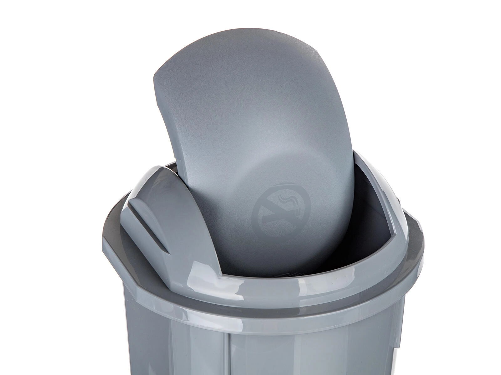 Výklopný mechanismus umožňuje rychlé vhození odpadu a víko se samo zavře, aby udrželo pachy pod kontrolou a obsah skrytý.