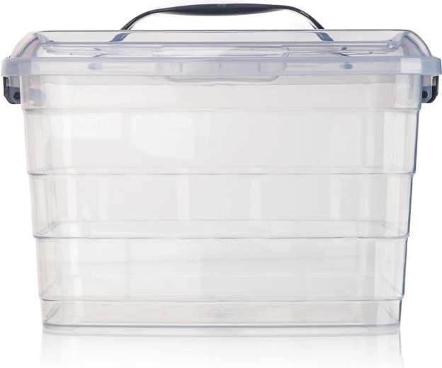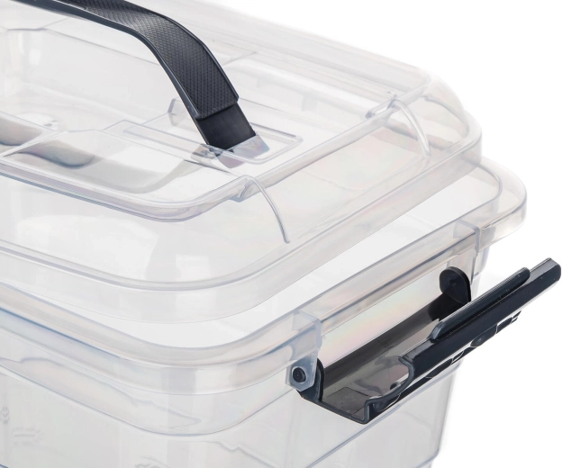 Průhledné stěny umožní okamžitou kontrolu obsahu bez otevírání víka – ideální pro rychlou organizaci domácnosti i kanceláře.