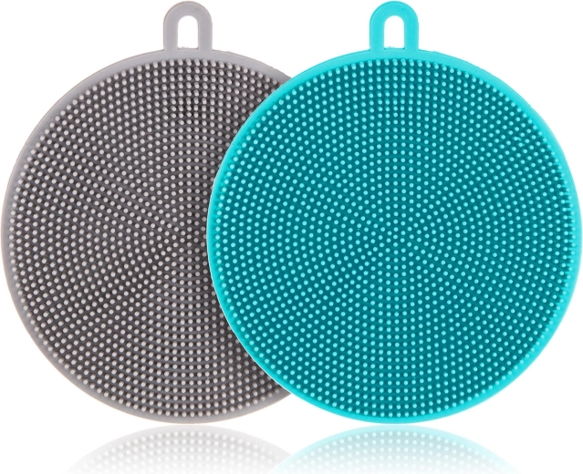 Univerzální silikonové houbičky o průměru 11 cm ve výhodné sadě 2 ks pro šetrné a efektivní mytí. Díky hustým štětinkám jemně čistí bez poškrábání a snadno se udržují – stačí je opláchnout nebo vložit do myčky. Odolný silikon, nepoškrábe povrchy, snadná údržba a víceúčelové využití v kuchyni.