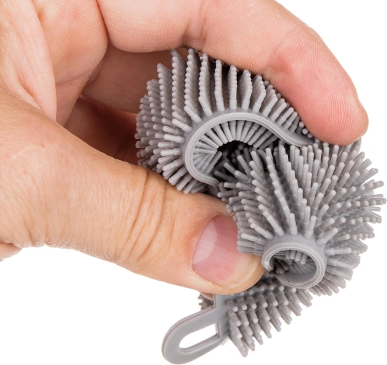 Husté silikonové štětinky šetrně odstraní nečistoty z talířů, hrnců i pánví s nepřilnavým povrchem, aniž zanechají škrábance.