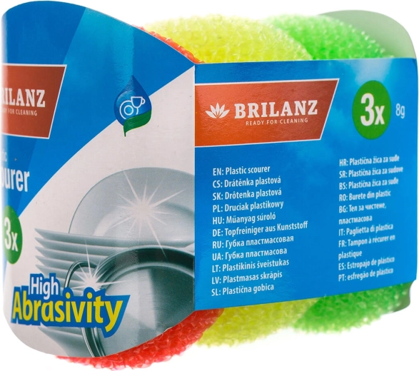 Praktická sada plastových drátěnek v mixu barev pro každodenní úklid kuchyně. Ideální k šetrnému, ale účinnému čištění nádobí a kuchyňských povrchů. Odstraňuje odolné nečistoty bez poškrábání citlivých povrchů, lehká a pohodlná do ruky, balení 3 ks pro delší využití.