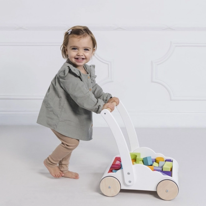 Součástí vozíku je 45 barevných kostek, které podporují kreativitu a rozvoj motorických dovedností.
