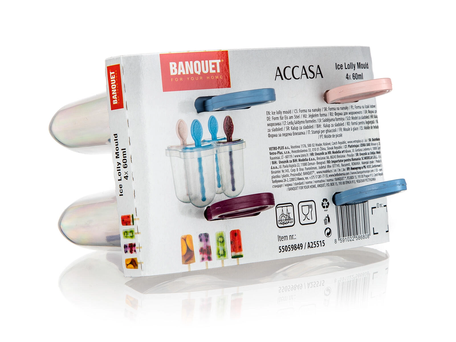Domácí ledové pochoutky bez starostí. S tvořítky na nanuky ACASSA připravíte osvěžující nanuky a sorbety z džusů, jogurtu i ovocných směsí. Díky průhledným nádobkám snadno vidíte úroveň naplnění a barevná držátka s rozšířeným okrajem zachytí kapky, takže ruce i oblečení dětí zůstanou čisté.