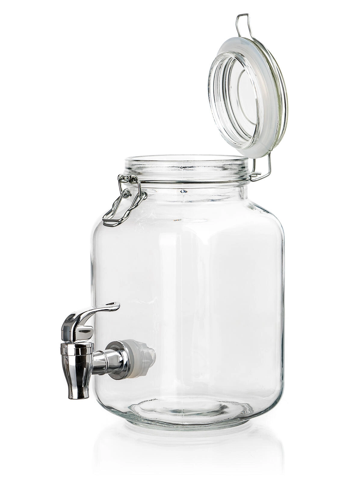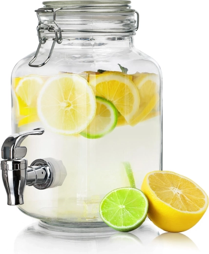 Stylový skleněný zásobník na nápoje o objemu 2,2 l je ideální pro servírování domácích limonád, džusů a ledových čajů. Díky pákovému víčku s těsněním zůstávají nápoje déle čerstvé a kovový kohoutek zajistí pohodlné a čisté nalévání. Široké hrdlo usnadňuje plnění, přidání ledu i kousků ovoce – perfektní volba pro oslavy, zahradní párty i každodenní osvěžení.