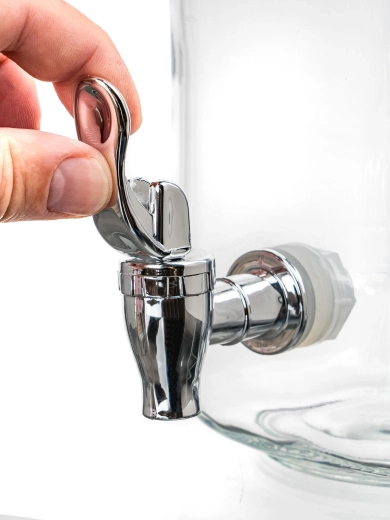 Tento univerzální skleněný dávkovač přináší elegantní způsob, jak podávat chladné nápoje při rodinných setkáních i větších akcích. Průhledné čiré sklo krásně zvýrazní barvy nápoje, ovoce i bylinek a zároveň umožní snadno kontrolovat zbývající množství.