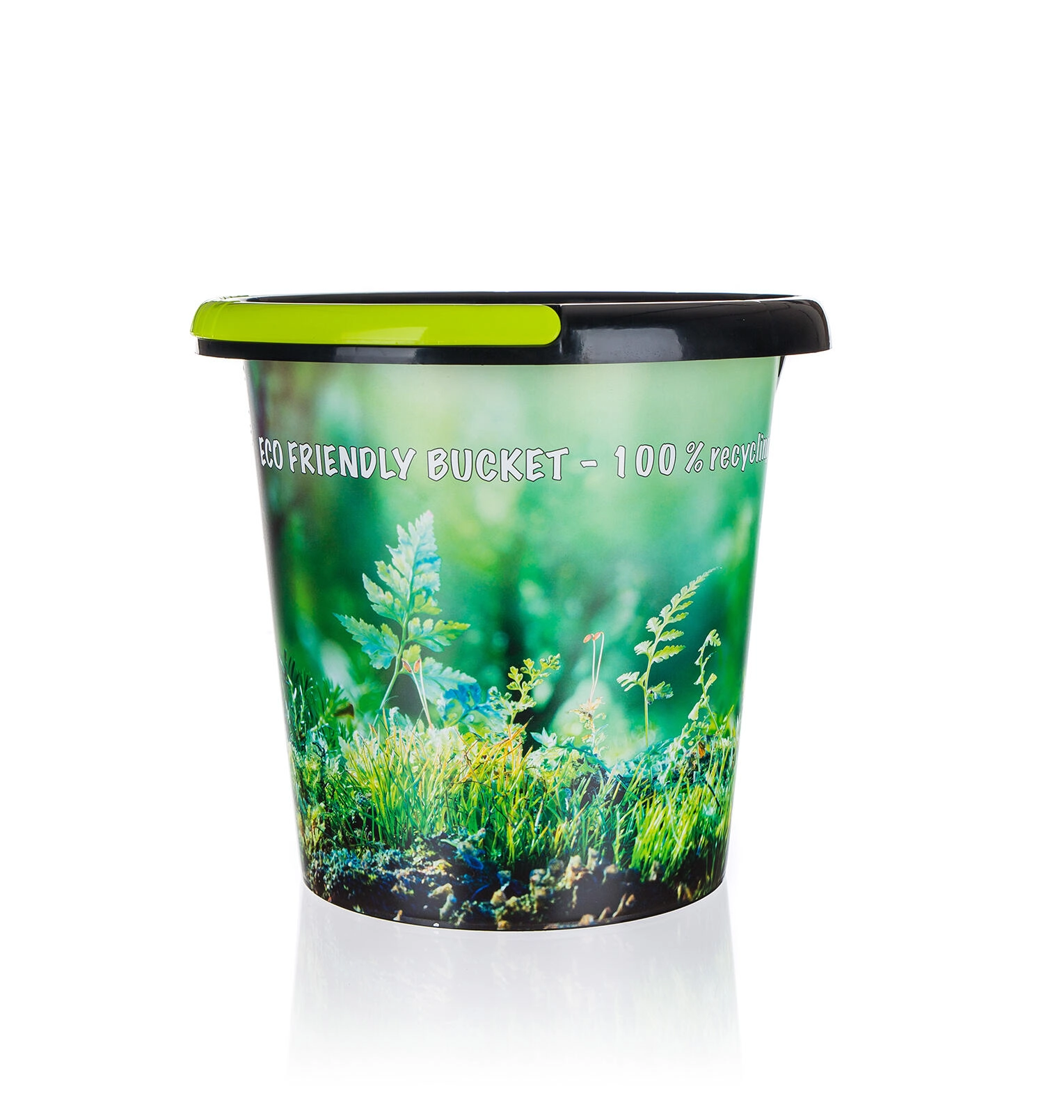 Kbelík je vyroben z recyklovaného plastu, čímž šetří zdroje a snižuje ekologickou stopu bez kompromisů v odolnosti.