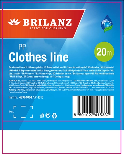 - Dostatečná délka 20 m – pohodlné věšení většího množství prádla.