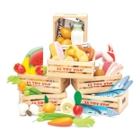 Dřevěná bedýnka s ovocem od Le Toy Van je perfektním prostředkem k rozvoji dětské imaginace. Obsahuje různé druhy ovoce jako banán, jahodu a pomeranč. Všechny díly jsou vyrobeny z pevného a udržitelného dřeva, malovány netoxickými barvami a mají ideální velikost pro malé dětské ruce.